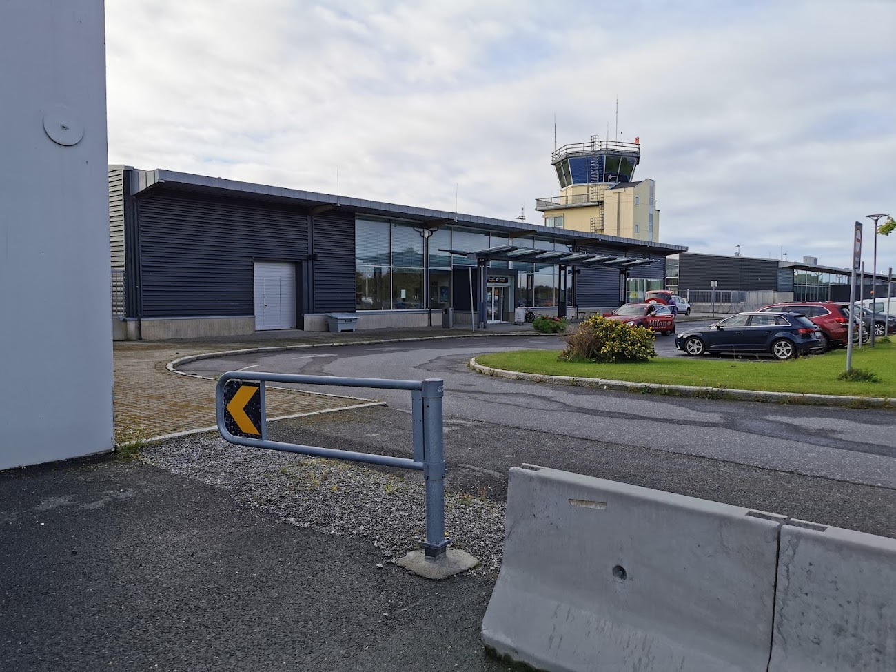 El acceso se realiza saliendo directamente de la terminal hacia la carretera que conecta con el núcleo urbano de Brønnøysund.