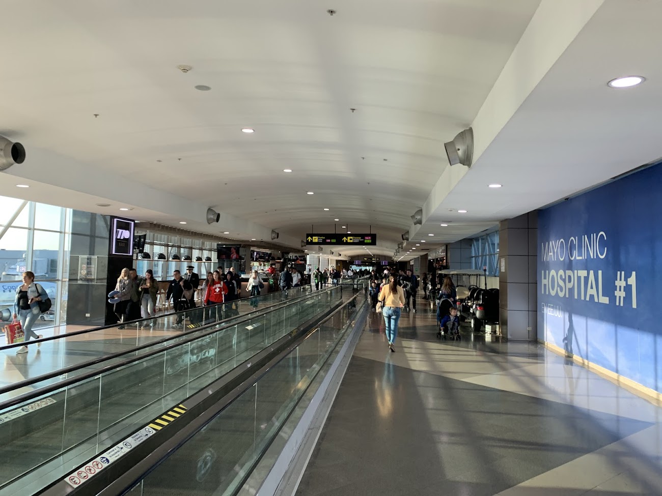 El área de embarque se sitúa tras el control de seguridad y se distribuye en distintos muelles conectados con la plataforma mediante pasarelas telescópicas y posiciones remotas para aeronaves.