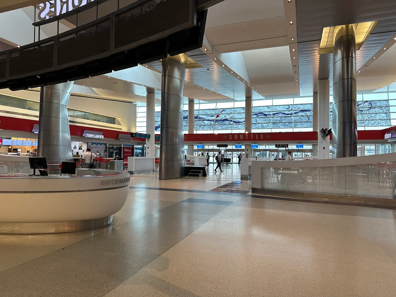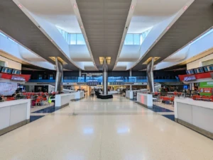El aeropuerto se organiza en varias terminales (A–F) conectadas entre sí mediante pasillos interiores dentro del mismo complejo, lo que permite desplazamientos sin necesidad de salir al exterior en gran parte del recorrido.