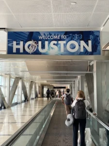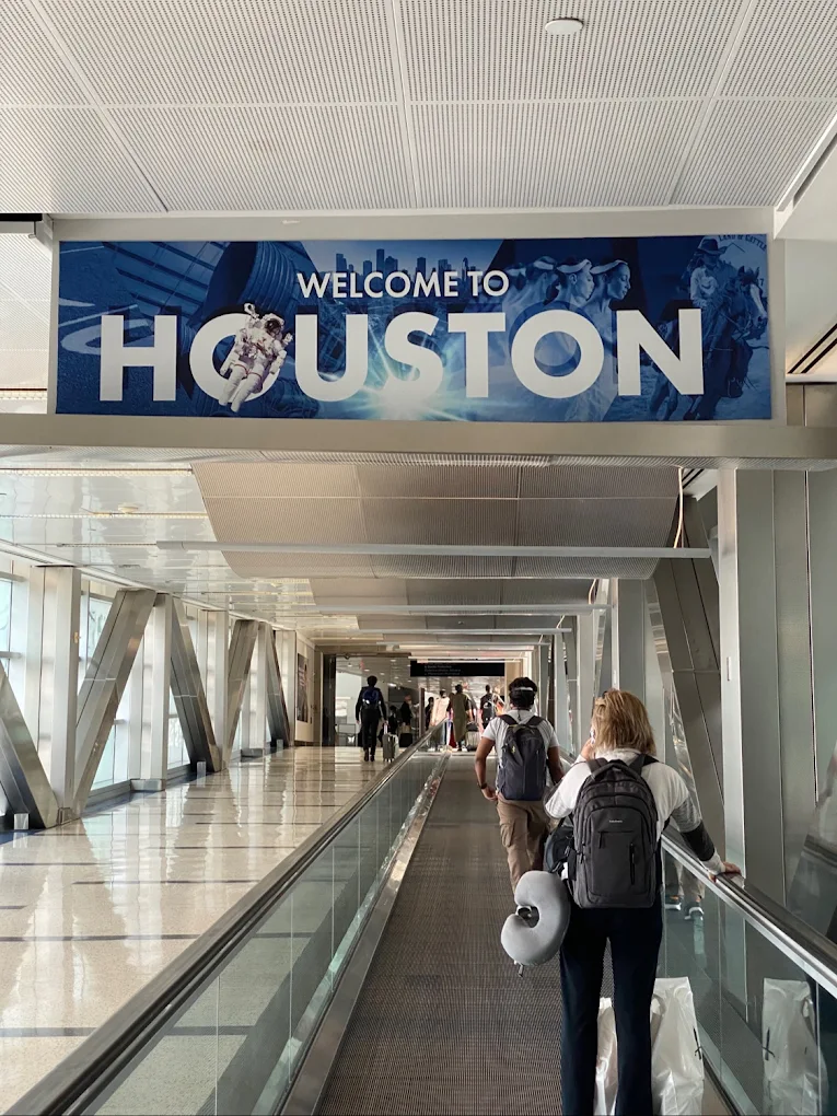 La recogida se realiza en la acera exterior, con personal de apoyo en las zonas habilitadas. El trayecto hasta el centro de Houston suele situarse entre 25 y 40 minutos dependiendo del tráfico.