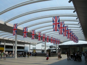 Alquiler de autos en Gatwick – Centro de recogida y disposición dentro del complejo aeroportuario.
