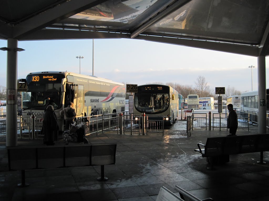 Una alternativa más económica es el traslado al centro de la ciudad de Londres a través de los autobuses, y para ello encontrarás a tu disposición dos importantes empresas: Terravision y National Express. La primera de ellas -si bien es más económica que la segunda- no funciona durante las 24 horas, en tanto que la segunda ofrece gran cantidad de servicios con buena frecuencia y durante todo el día. El lugar de salida de los autobuses de ambas empresas se localiza frente a la Terminal en la zona del aparcamiento y las tarifas varían según el destino y la compañía.