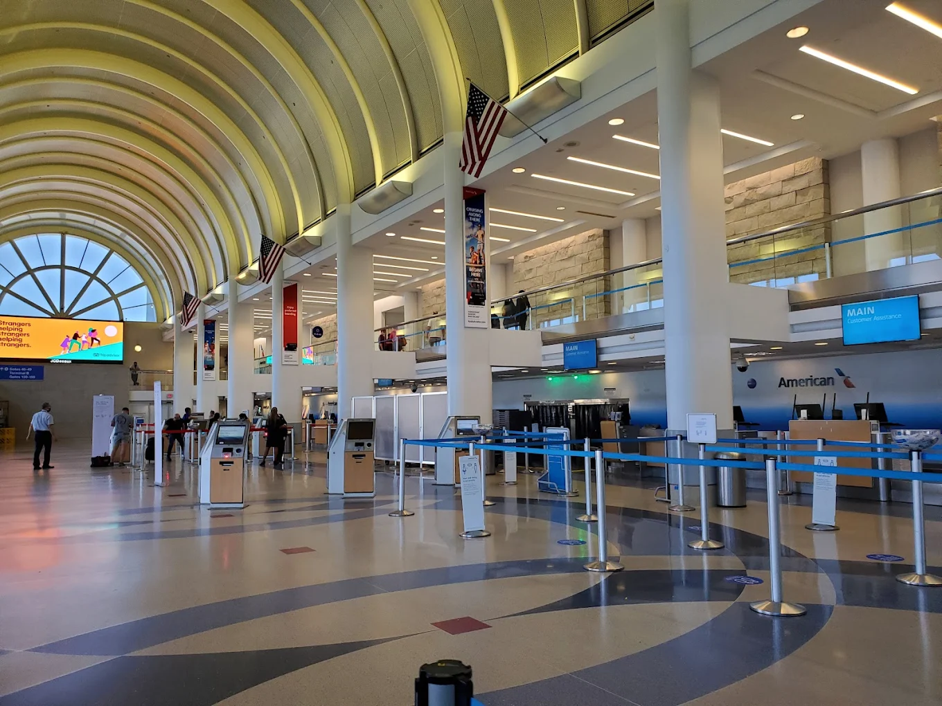 El aeropuerto dispone de un complejo terminal formado por nueve edificios organizados en torno a una carretera perimetral interna en forma de herradura conocida como World Way.