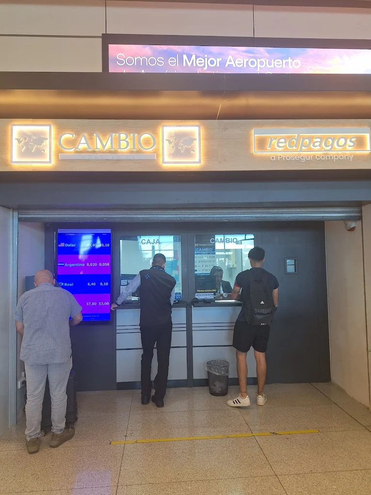 El aeropuerto de Carrasco cuenta con una casa de cambio en la se puede realizar el cambio de divisas.