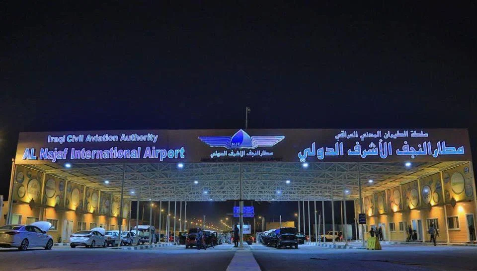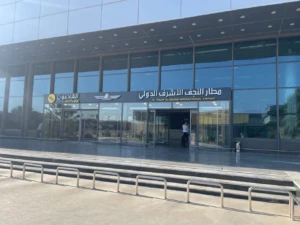 El aeropuerto se sitúa a unos 10 km del centro de Najaf y el acceso se realiza por carretera mediante taxis y traslados privados, en un entorno urbano articulado por vías principales que conectan directamente con la ciudad.
