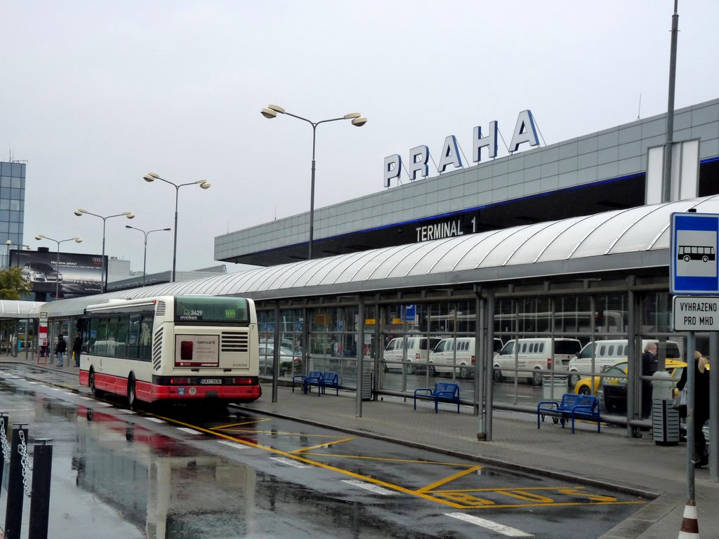 Los autobuses de la empresa de transporte público de Praga Co. tienen parada en ambas terminales cada 10 minutos. Los billetes se pueden comprar por 32 CZK (corona checa) en la sala de llegadas ( y 40 CZK al conductor del autobús).