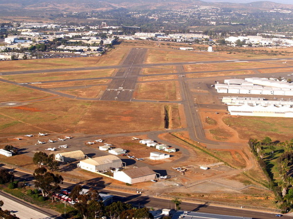 El aeropuerto se sitúa a unos 10 km del centro de San Diego, dentro de una zona urbana consolidada, con acceso directo por carretera y un modelo de movilidad basado en vehículo privado, taxi y servicios de transporte bajo demanda, sin infraestructura específica de transporte público aeroportuario.