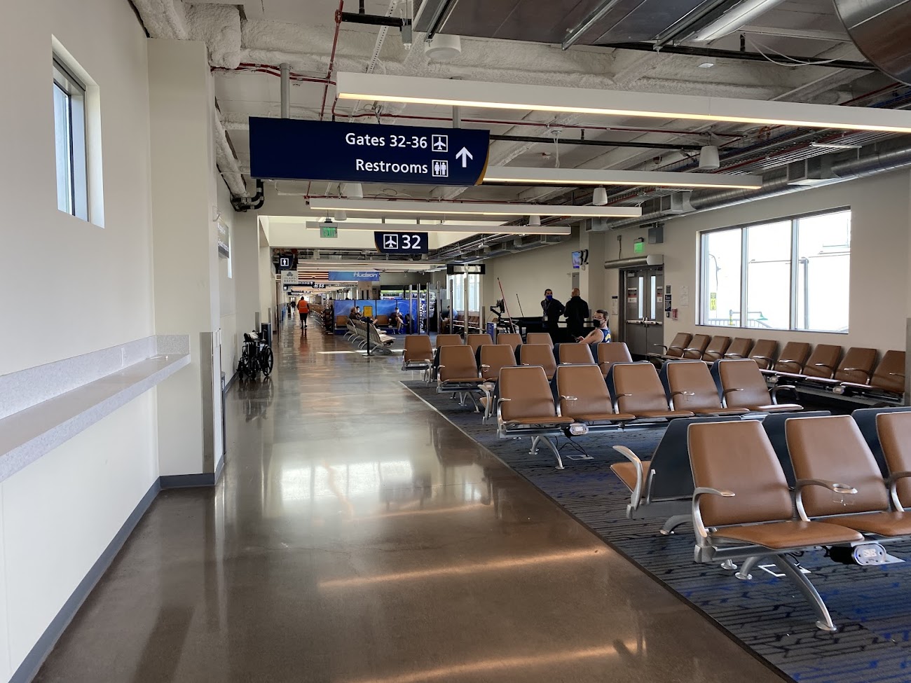 Las áreas de embarque se sitúan tras los controles de seguridad y combinan posiciones con pasarela y embarque remoto en plataforma.
