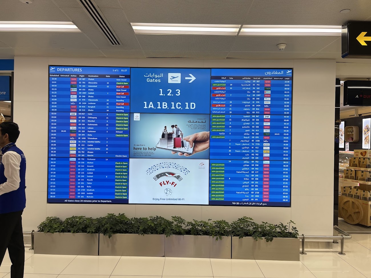 - Puerta: Confirma el gate en las pantallas tras pasar el control.