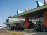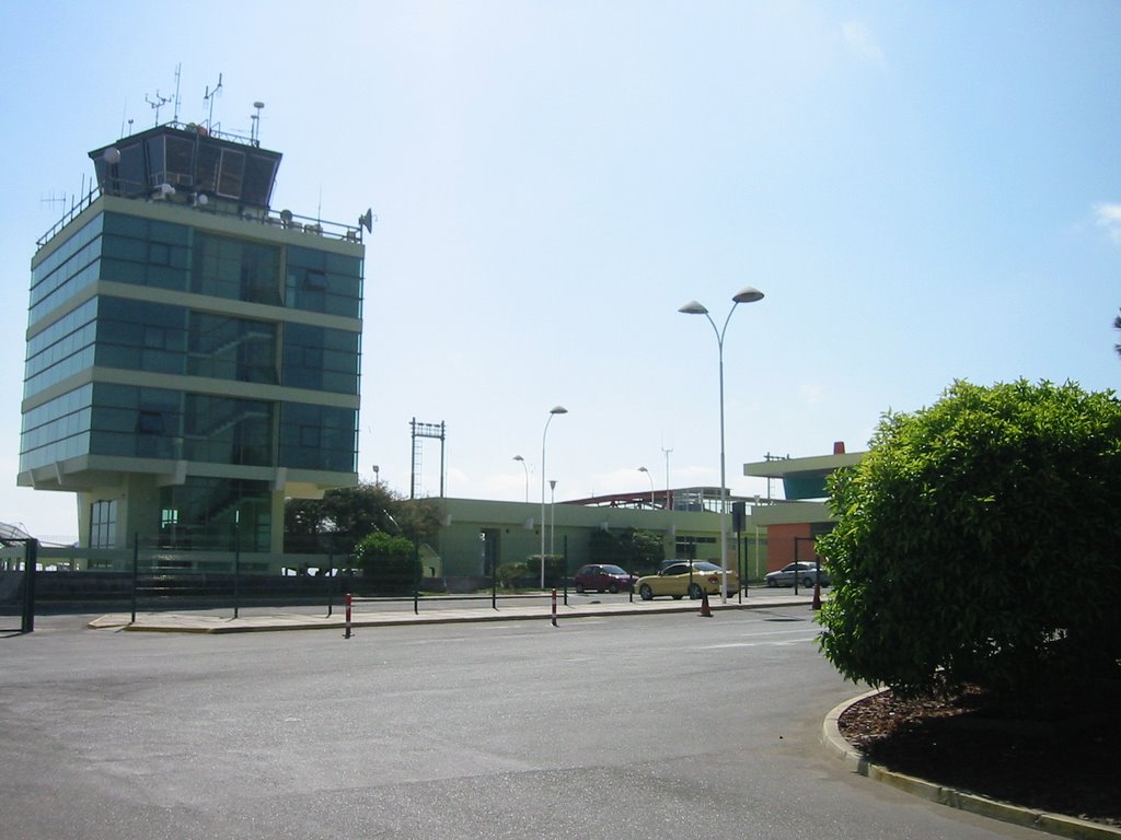 Los buses de la ciudad no pueden ingresar al aeropuerto, por lo cual suelen esperar por pasajeros a las afueras del aeropuerto.